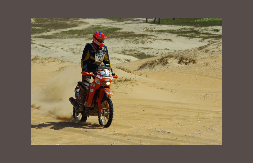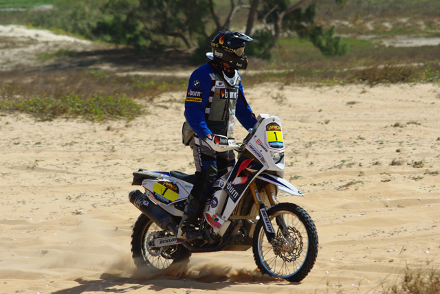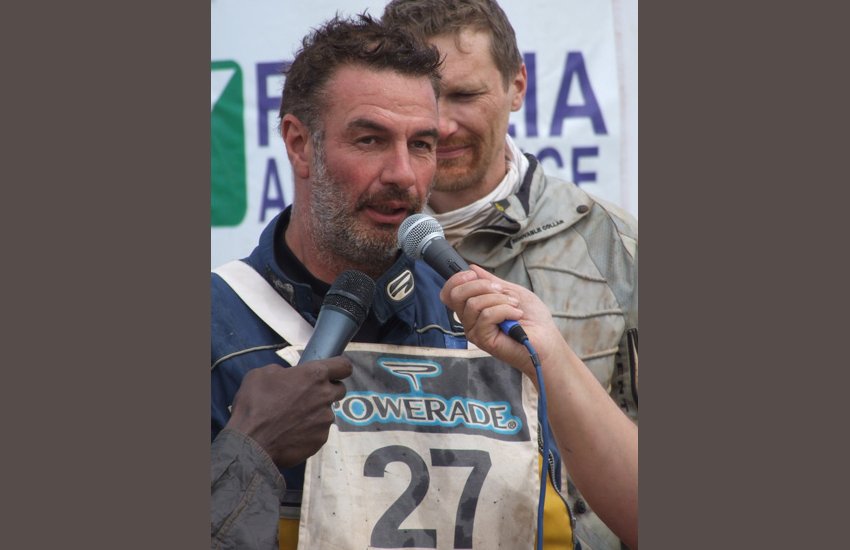 Accueilli en fanfare par le public et les membres de sa famille, le Francosénégalais réalise son rêve et signe, à 55 ans, son dernier rallye international au guidon de son KTM 525 EXC flanqué du numéro 27.