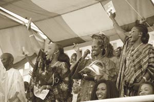 Puis au même moment, de la foule, se libèrent joies et déceptions. Diamalaye gagne ! Suivi de Machaalah. Les paris étaient bons. Diamalaye peut remercier fièrement son écurie Sakhir Thiam. Il marche, tête basse, alors que des centaines d’enfants l’accompagnent vers la gloire.