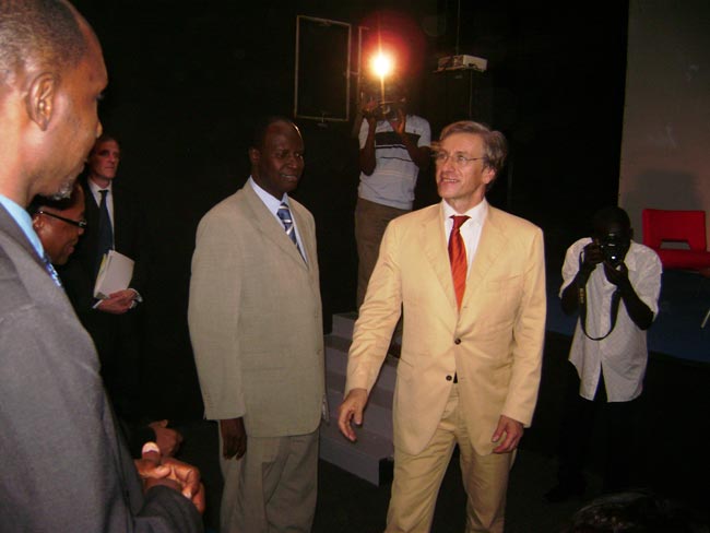 Au sein du Centre Culturel français rebaptisé Institut français Sédar Senghor du nom de celui qui, de tous les présidents africains, sut le mieux allier l’exercice du pouvoir et l’essor des Arts et Lettres, Bernard Kouchner était accompagné entre autre d’Olivier Poivre d’Arvor ainsi que du directeur de la mondialisation (heureuse ose t’on espérer…) : Christian Masset. B. Kouchner avait également ramené dans ses bagages le tout nouveau directeur de l’Institut français Léopold Sédar Senghor. On nota également la présence de l’ambassadeur de France Jean-Christophe Ruffin ainsi que diverses sommités sénégalaises et françaises.