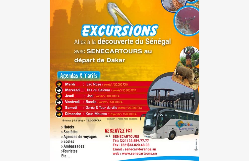 | Samedi | Gorée et tour de ville (journée) | 20 000 FCFA |