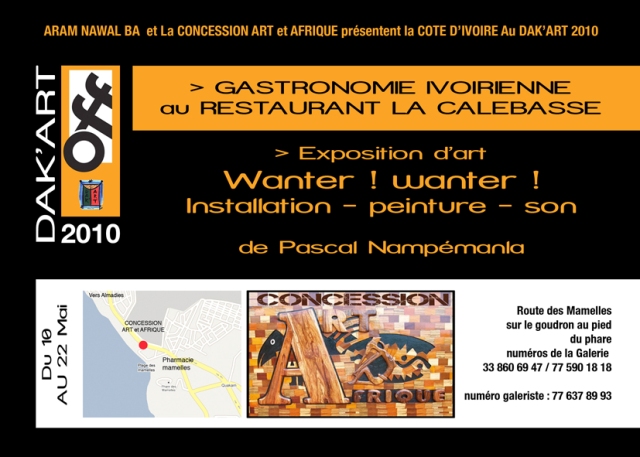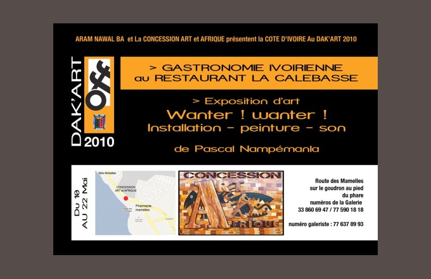 C’est à travers des installations semblables à celles de ces marchés, de la musique reprenant les slogans diffusés par des hauts parleurs lors des « déballages », « wanter ! wanter ! » ( braderie en wolof) que l’artiste a donné sa vision du nouveau Dakar, celle d’un marché perpétuel. Tout se vend, tout se négocie, parfois illégalement. Cette transformation de la ville qui ne semble gêner personne, il la compare au Sénégal même qui, dit- il, « brade son image, et se vend contre des promesses toujours fallacieuses »…