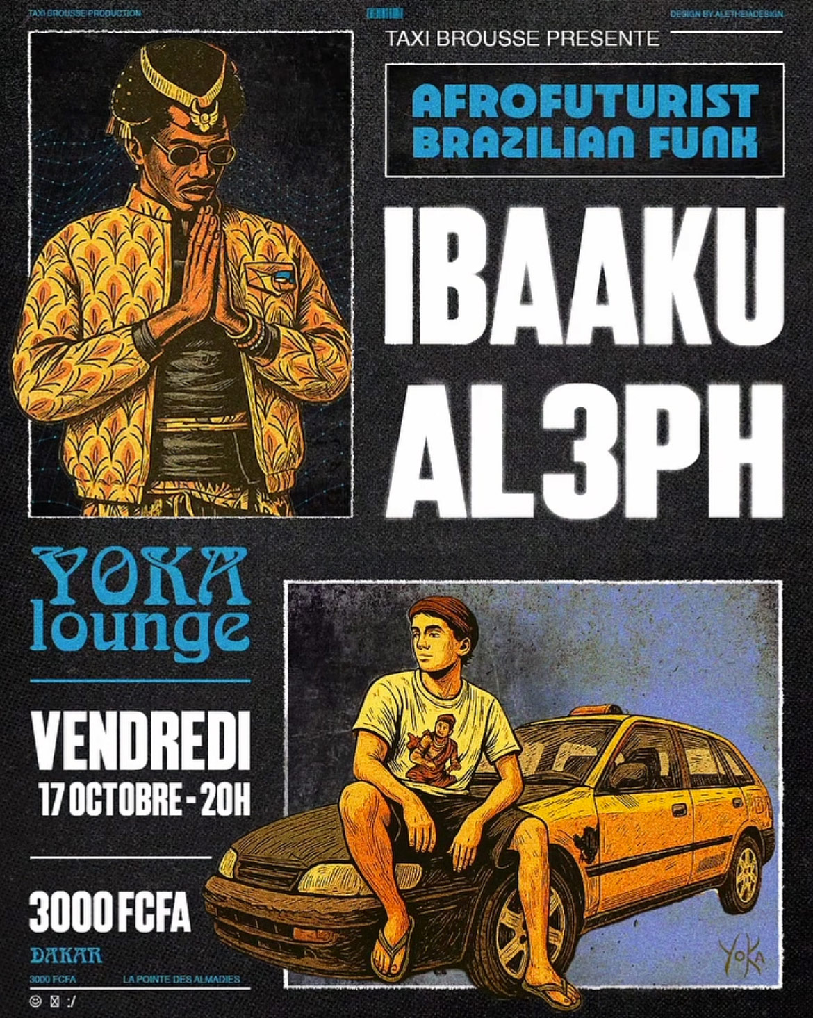 Vivez une soirée unique Afrofuturiste et Baile Funk avec al3ph, Ibaaku et Bolero La Gratte au Yoka Lounge, Pointe des Almadies, laissez-vous emporter par un voyage musical intercontinental, entre rythmes brésiliens et univers sonores afrofuturistes.