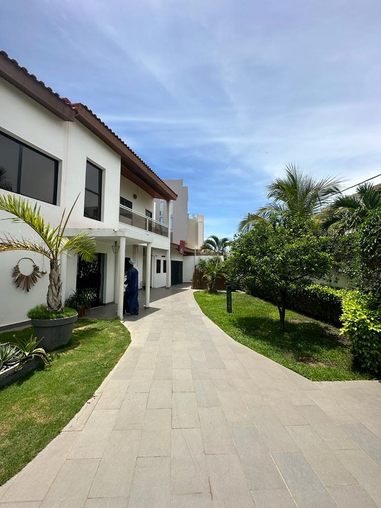 Belle et spacieuse la villa R+1 à louer aux Almadies, composée de sept chambres et accompagnée de toutes les commodités disponibles : piscine avec cascades, jardin, salle de jeux climatisé, bureau, garage, groupe électrogène, chauffe-eau solaire, caméra de surveillance, le tout dans un cadre convivial et confortable.