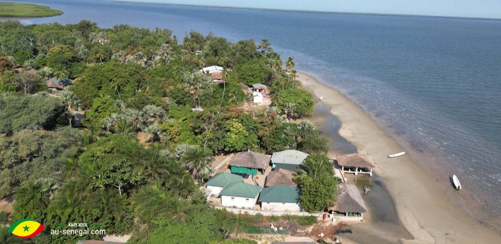 Situé sur l’île de Cachouane, accessible en pirogue depuis Elinkine, ce campement offre un cadre naturel idéal pour découvrir les bolongs et le fleuve Casamance.