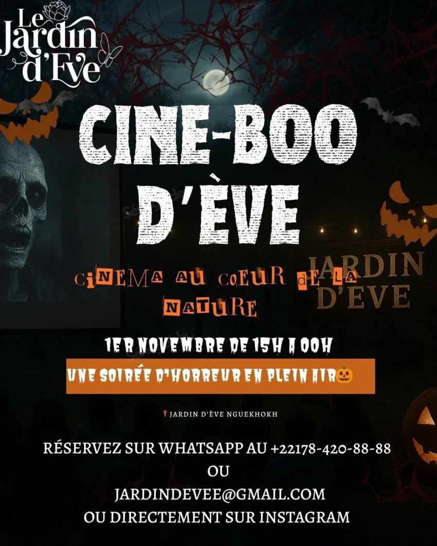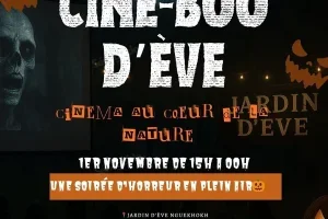 Pour sa soirée spéciale Ciné-Boo d’Ève, le Jardin d’Ève invite petits et grands à plonger dans l’univers fascinant et frissonnant d’Halloween. Entre rires, peur et bonne humeur, vivez une expérience ciné unique sous les étoiles, dans un cadre naturel enchanteur.