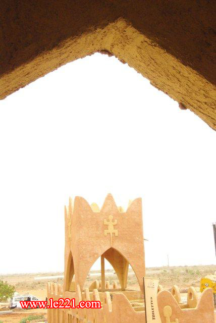 Des infrastructures telles que tour de contrôle, stands, équipements sanitaires, parking, cafétéria sont construits dans le style de l’architecture vernaculaire du Mali. Des villas de location sont situées en face du parking.