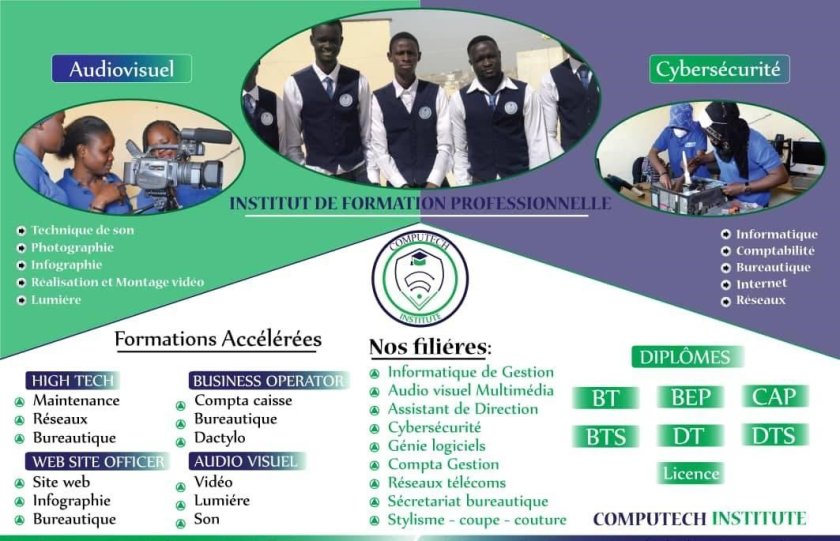 Computech est un institut de formation professionnelle pour jeunes, adultes, débutants et professionnels, de l’initiation à la spécialisation. Il propose des formations en informatique, en gestion et développement personnel, ainsi que dans les métiers de l’artisanat. L’institut prépare également à des diplômes du CAP à la licence.