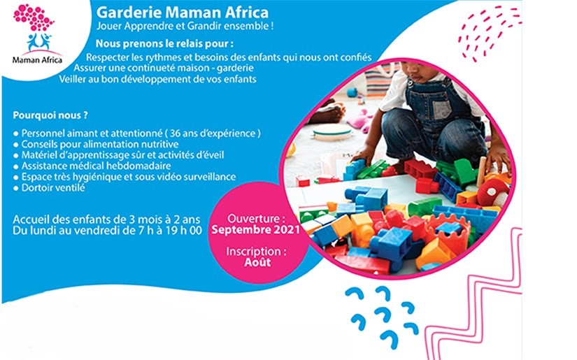 La creche Maman Africa accueille vos enfants dans un cadre propre et agréable, avec une grande cour, des repas sains, et des éducatrices attentives et bien formées. La crèche propose aussi une cantine, un service de transport, l’apprentissage du Coran, ainsi qu’un grand choix de jeux pour stimuler leur éveil.