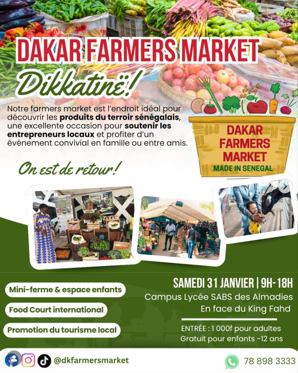 Le Dakar Farmers Market est l’endroit idéal pour découvrir des produits Made in Senegal, soutenir les entrepreneurs locaux et profiter d’un moment chaleureux en famille ou entre amis.