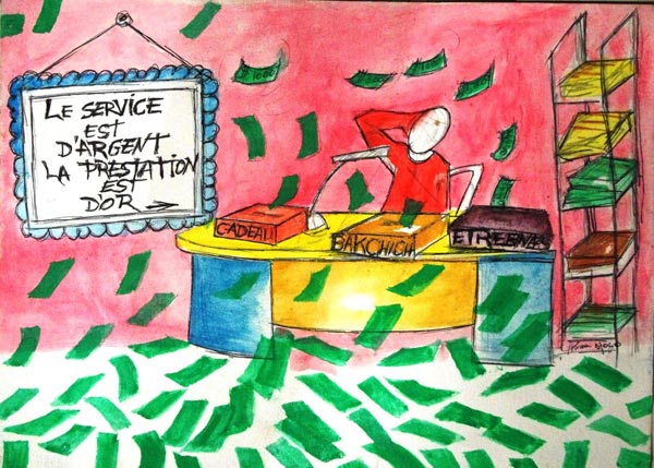 Pratique universelle certes, mais il n’existe aucun signe sûr : prognathisme aigüe, canine rayant le parquet etc, permettant de détecter les bakchichables des non bakchichables.