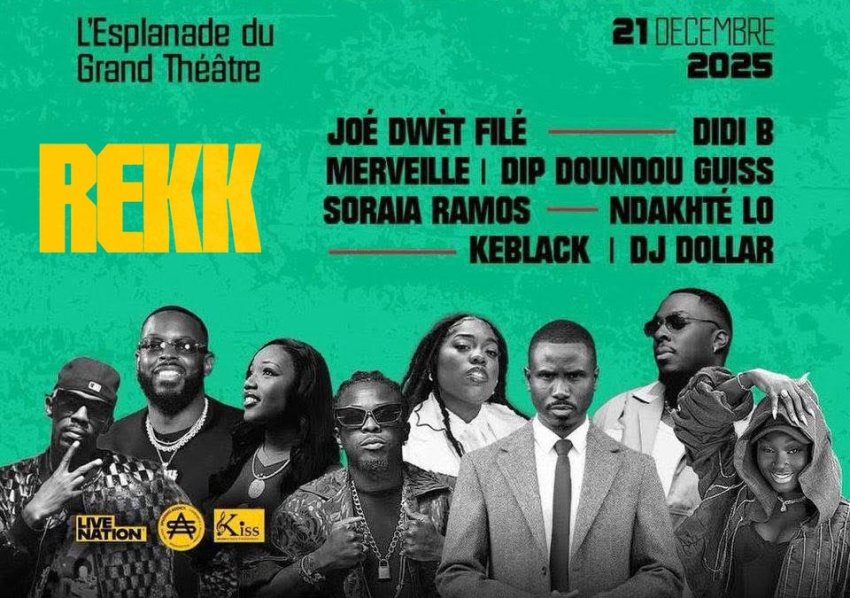 Esplanade du Grand Théâtre, 21 décembre 2025 - Le Festival Rekk s’installe au cœur de Dakar pour une soirée explosive de musique et de performances artistiques. Au programme : Didi B , Joe Dwet Filé , Merveille , Dip Doundou Guiss , Soraia Ramos ,Ndakhte Lo , Keblack , DJ Dollar.