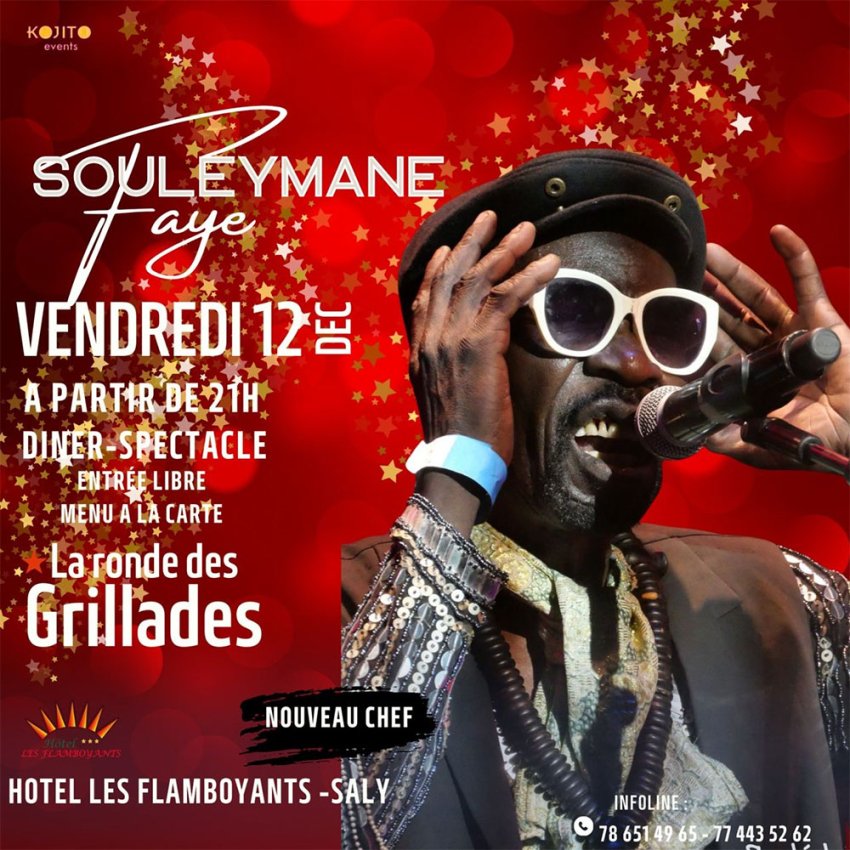 Dîners et concerts aux Flamboyants de Saly avec Souleymane Faye, Pape & Cheikh, Cheikh Lo, Xalam II, Balla Ndiaye, El Hadj Diouf, Papis & Sayo Fusion et Omar Pene.