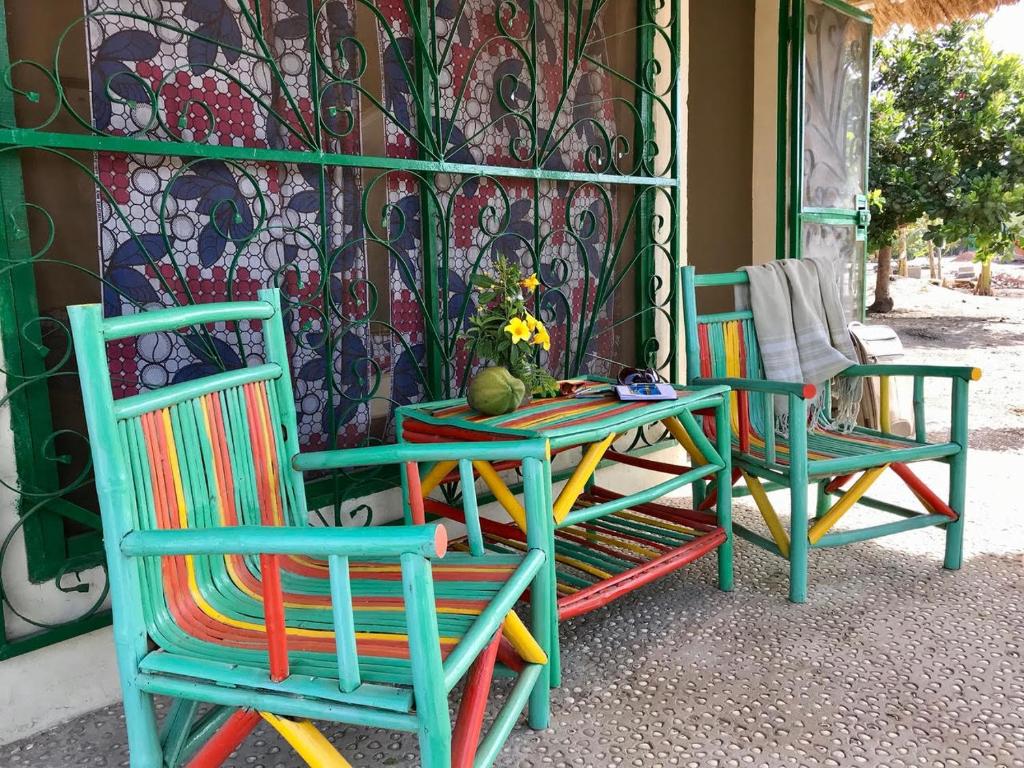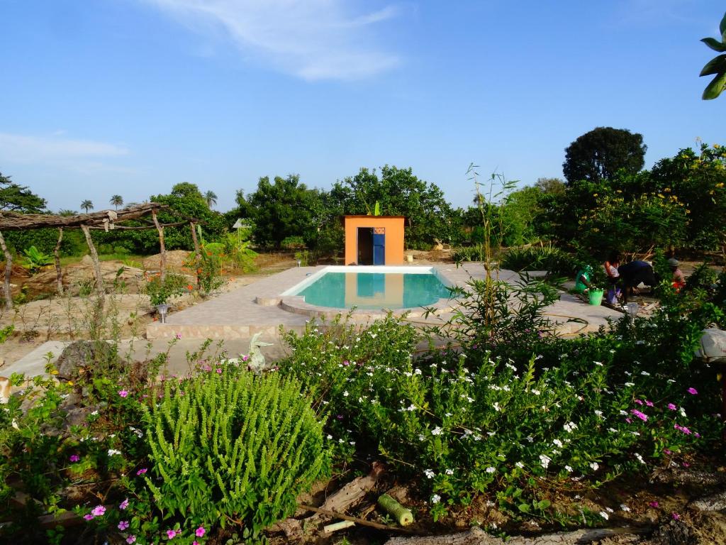 L’accent est mis sur le respect des ressources locales et sur la valorisation de l’artisanat de la région. Une piscine au milieu d’un immense jardin plein d’arbres fruitiers et de vie.