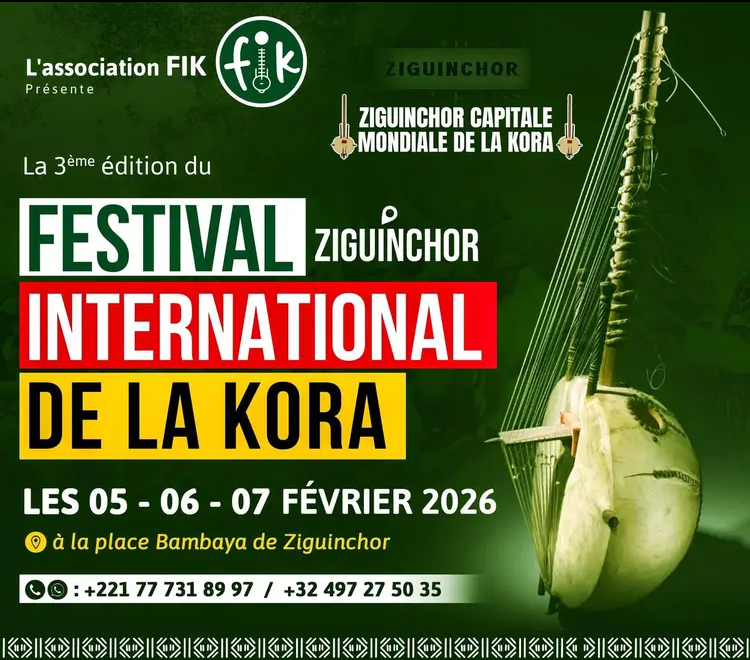 Ziguinchor vibrera au rythme de la Kora lors de la 3ᵉ édition du Festival international de la kora. Cet événement unique rassemble des maîtres de la Kora, des artistes venus du monde entier et un public passionné pour célébrer cet instrument emblématique de l’Afrique de l’Ouest.