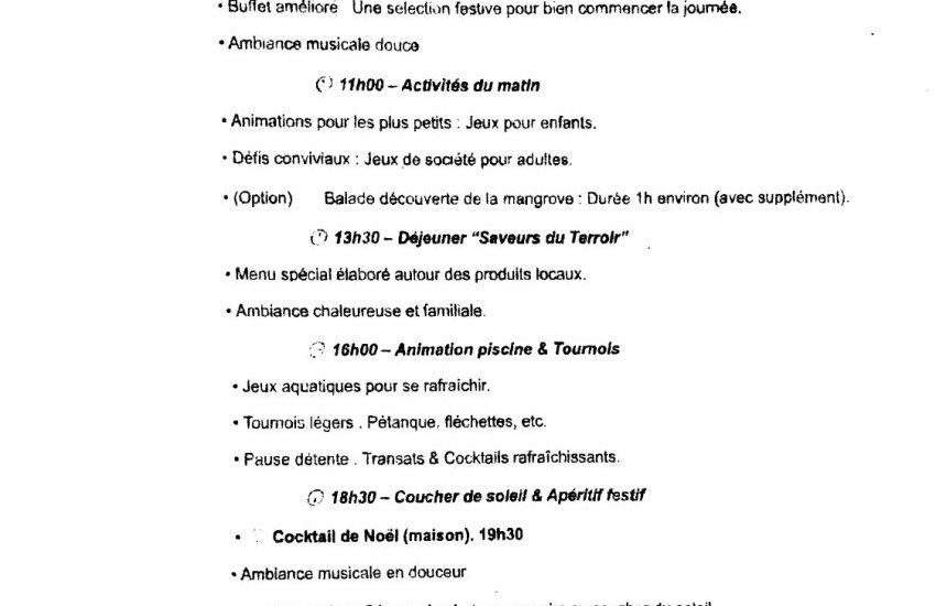 - Option : balade découverte de la mangrove , durée 1h environ (avec supplément).