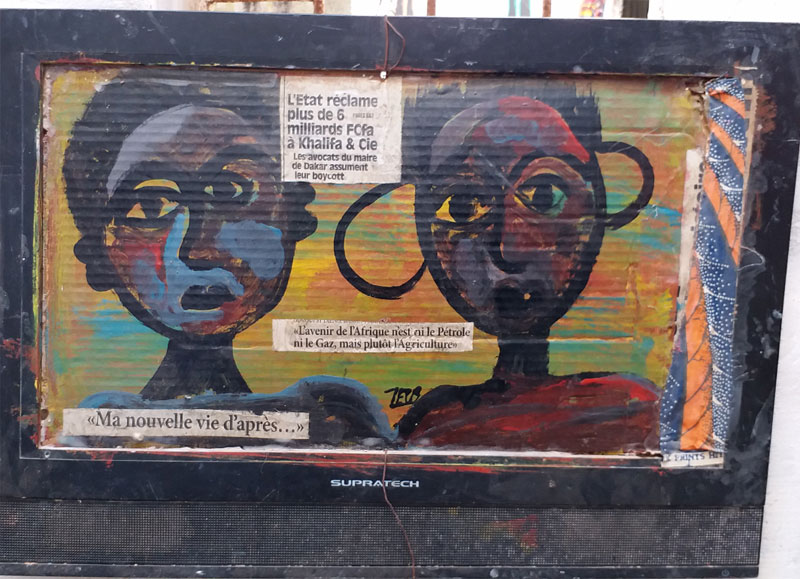 Dans la région de Saint-Louis, Zeuss, un talentueux artiste, exprime son art autour de cette notion. Il réalise des œuvres d’art à partir d’objet de récupération (écran télé, roue vélo, couvercle toilette etc). L’artiste peintre expose dans les salons, les festivals, et dans les centres de loisirs.