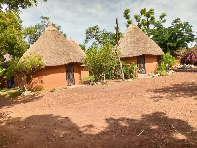 Le campement comporte 13 bungalows construits dans le style local. Un grand bâtiment central sert de salle de réception, de bar et de restaurant. Très typique, il est construit selon les procédés locaux, lui conférant ainsi un cadre authentique. Pour vous rafraichir se trouve tout à côté une piscine de 9x4m.
