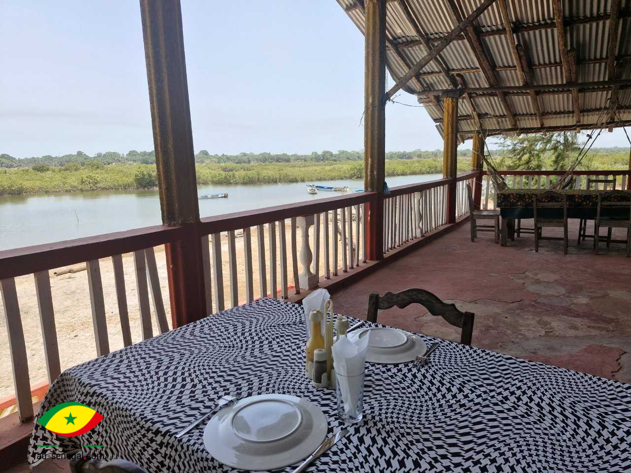 Le bar-restaurant se trouve à l’étage et offre une belle vue sur les bolongs et la mangrove . On y sert le petit déjeuner ainsi qu’un choix de plats français et sénégalais, dans un cadre agréable au bord du fleuve.