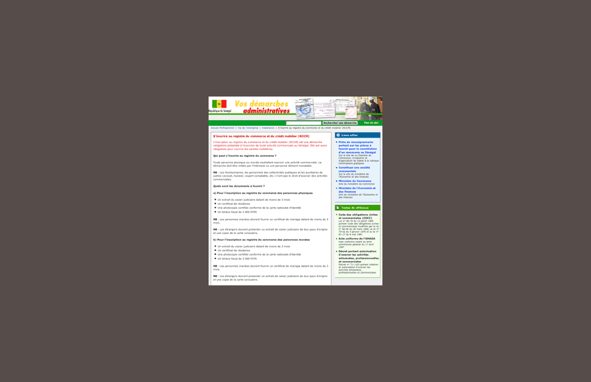 Le site contient des informations nécessaires aux citoyens (particuliers et professionnels pour initier leurs démarches administratives.
