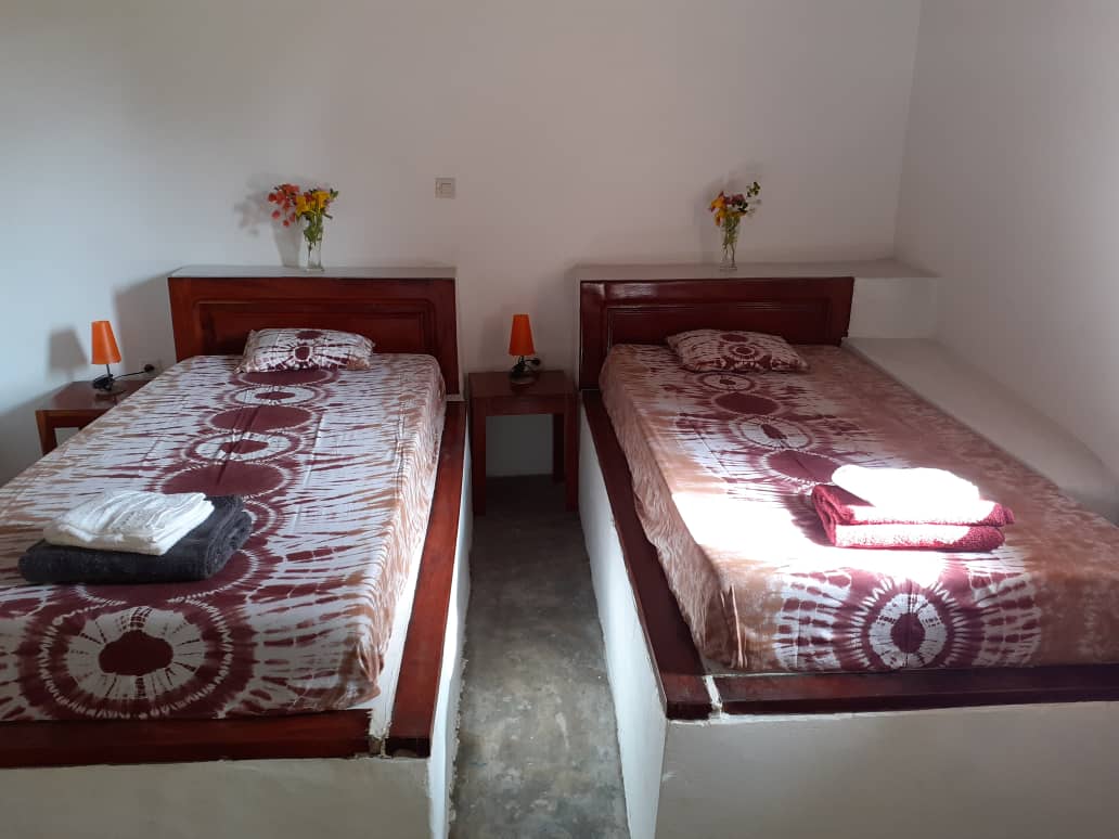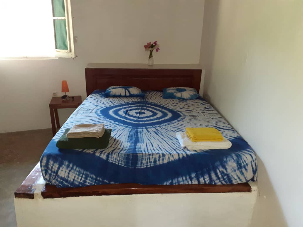 Way Kassala, construite dans un grand espace arboré, s’inspire de l’architecture diola traditionnelle. La case à impluvium, organisée autour d’un puits de lumière, propose sept chambres spacieuses avec salles de bains privées. Chaque chambre est équipée d’un lit double ou de deux lits jumeaux, de chevets et d’un placard-penderie.