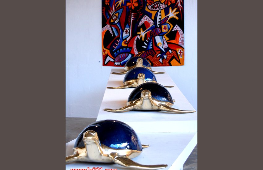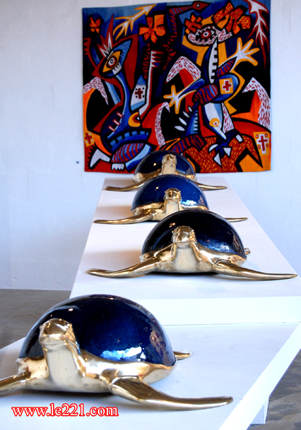 Ces œuvres plus vraies que nature, on ne les doit pas uniquement à Marc Montaret. Son art s’inspire des autres, comme il le dit si bien. En passant par la manufacture des arts décoratifs de Thiès, le fondeur Bara Lamine Diop (bronze), Eric Dubouchet, West Marine, et Mauro Petroni, « paradis perdus » s’est construit avec l’apport de tous.