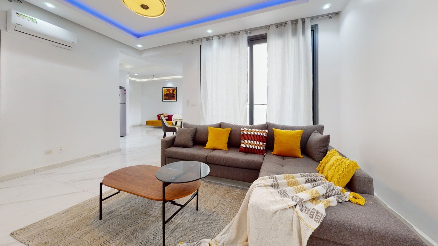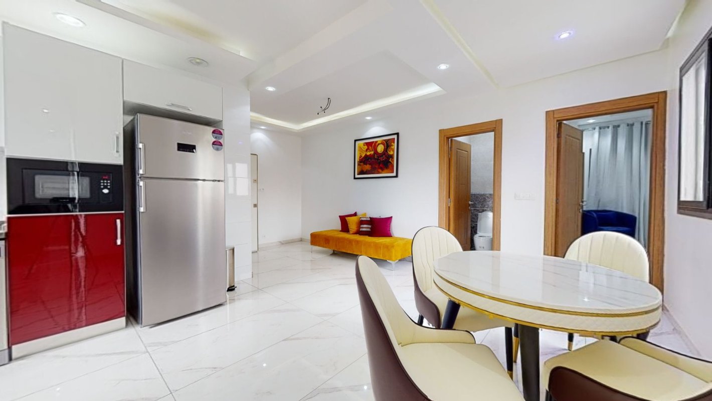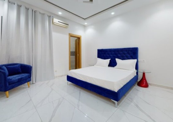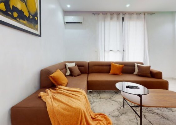 L’appartement F4 de haut standing assure confort et convivialité dans un quartier calme et idéalement situé au centre de la capitale. Il dispose de trois chambres avec salle de bain, d’un salon entièrement équipé, d’un espace familial et de toutes les commodités pour un séjour confortable.