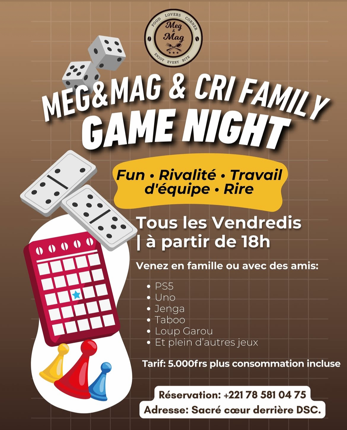 - Réservation : +221 78 581 04 75