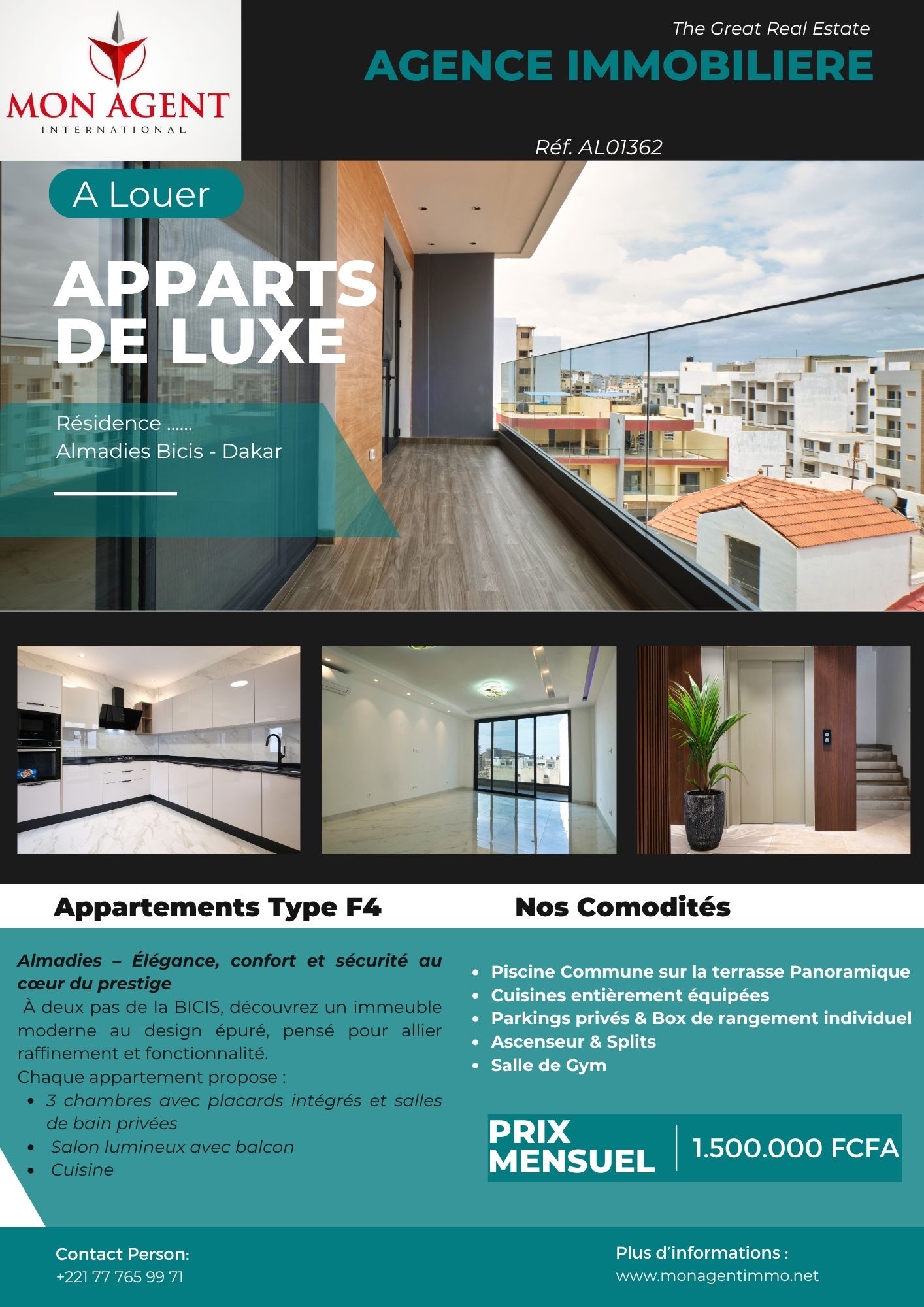 Prix : 1 500 000 F CFA /mois