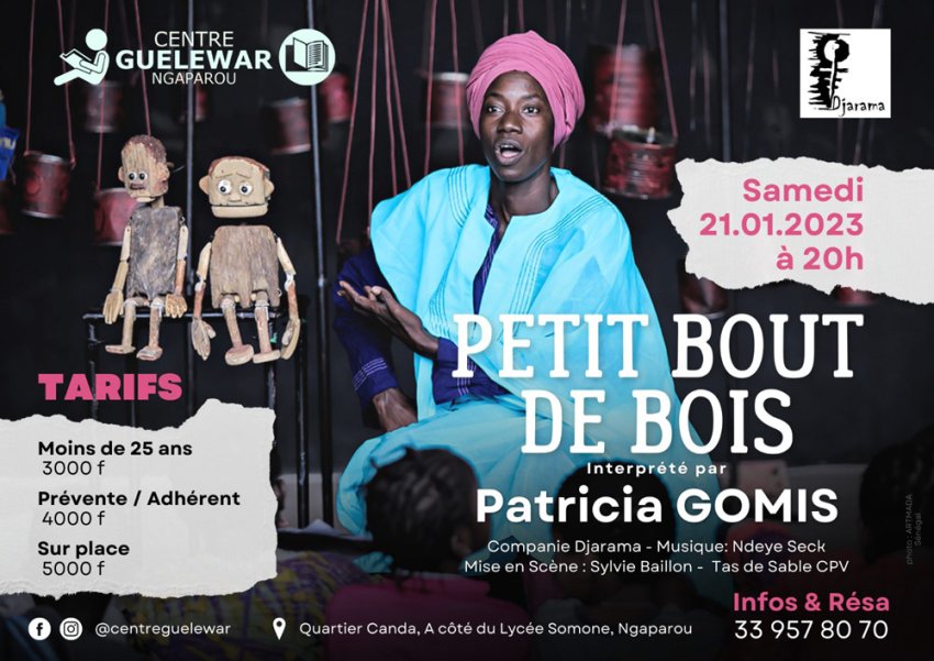 Le spectacle Petit Bout de Bois raconte la vie de ces petits garçons communément appelés talibés ou enfant des rues. Placés sous la férule d’un marabout censé leur enseigner le coran ils errent quotidiennement, dans les quartiers dakarois. Petites bandes quêtant l’obole des passants.