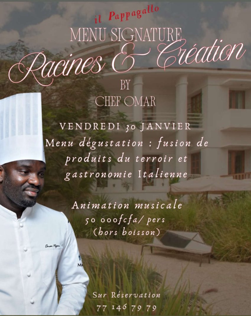 • Tarif : 50 000 FCFA / personne (hors boissons)