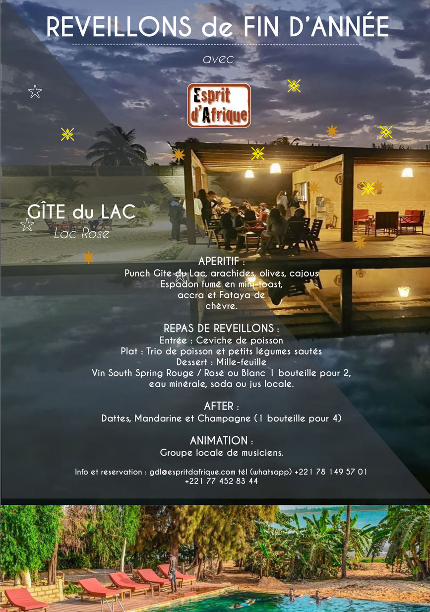 Des soirées magiques sous les étoiles avec Esprit d’Afrique au Gîte du Lac au lac Rose. Des menus festifs et animations.
