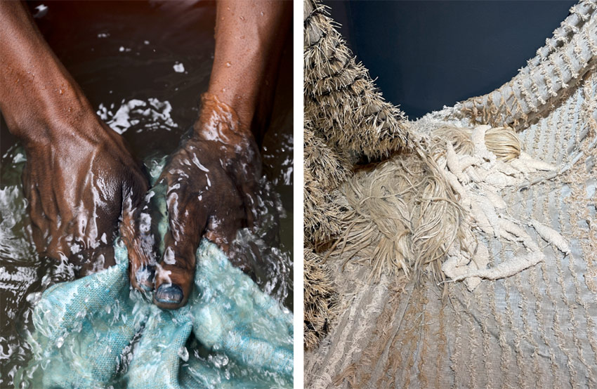 Le mélange intime des fils, des fibres, peut être considéré comme une métaphore du tissage, qui crée une matière fluide et soudée, inséparable des matériaux intrinsèquement liés.