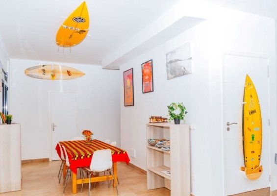 La Surf House peut accueillir jusqu’à 9 personnes et dispose de trois espaces d’hébergement distincts :