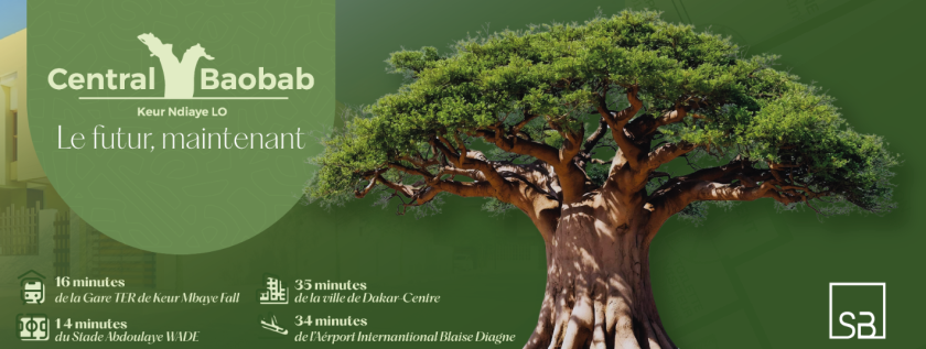 Situé à 25 km du centre de Dakar, à la sortie 10 de l’autoroute, Central Baobab est un programme résidentiel offrant un cadre de vie moderne et agréable. Ce projet comprend 33 villas spacieuses, allant des modèles F4 et F5, avec des superficies variant de 160 m² à 190 m².