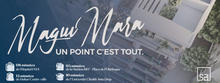 Située au point E, Maguimara est une résidence de haut standing de type R+9, composée de 24 appartements de type F3 et F4. Les logements se distinguent par leur confort et leur élégance, avec des surfaces allant de 108 à 175 m².