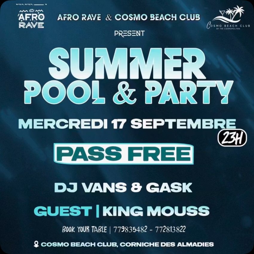 À partir de 23h, profitez d’une nuit en mode pass free avec aux platines DJ Vans & Gask, et en guest spécial King Mouss. L’occasion parfaite pour chiller, danser et vivre l’énergie des Almadies.