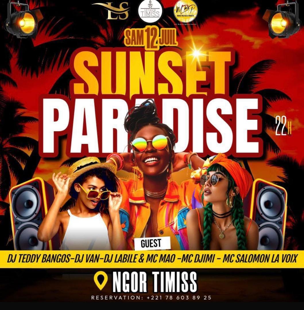 Le samedi 12 juillet 2025 à partir de 22h, vivez une soirée explosive à Ngor Timiss avec Sunset Paradise, la fête la plus ensoleillée et festive de l’été à Dakar ! Un rendez-vous unique pour danser jusqu’au bout de la nuit, dans une ambiance tropicale et vibrante.