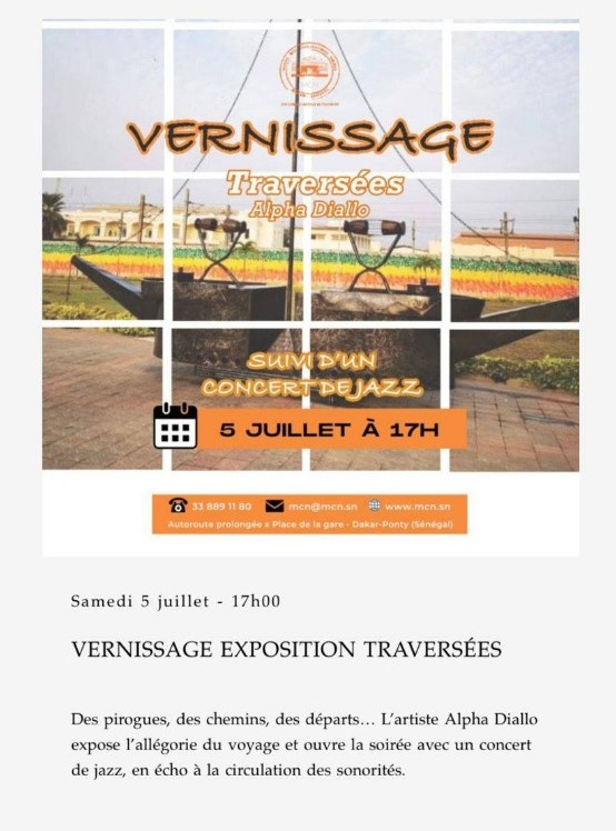 Le samedi 5 juillet à 17h, le Musée de la Civilisation Noire (Dakar) accueille le vernissage de l’exposition Traversées de l’artiste Alpha Diallo. Une exploration poétique du voyage et des départs, symbolisée par des pirogues et des chemins, qui invite à réfléchir sur nos trajectoires.