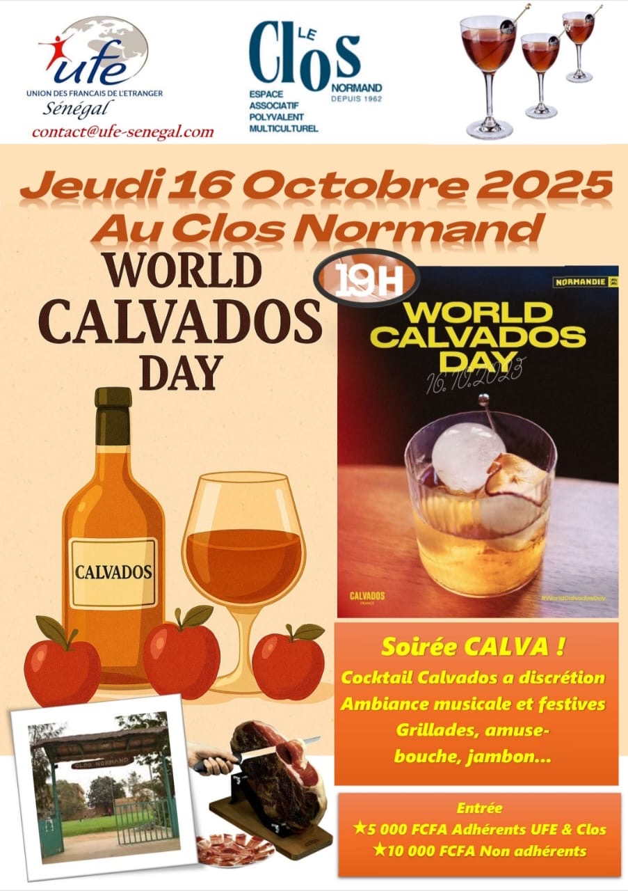 Plongez dans l’ambiance conviviale et gourmande du World Calvados Day, une soirée unique dédiée aux saveurs de la Normandie. Au programme : dégustation de cocktails à base de Calvados offerts par la Normandie, animations festives et ambiance musicale dans un cadre chaleureux. Une occasion rare de savourer l’esprit normand au cœur de Dakar, sous la houlette de votre hôte passionné et de l’équipe du Clos Normand.