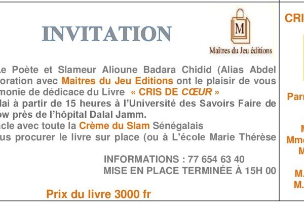 Cérémonie de dédicace du recueil de poème, « Cris de cœur »