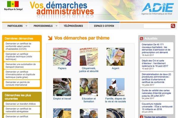 Les démarches administratives du Sénégal en ligne