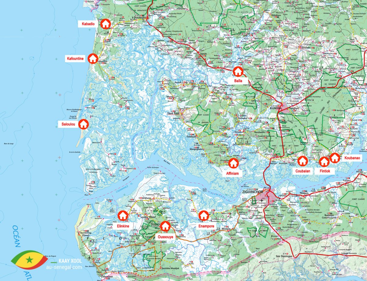 La Fédération des campements villageois s’est restructurée, les campements existants ont été rénovés (Baïla, Coubalan, Affiniam, Enampore, Elinkine, Kafountine et Oussouye) et d’autres ont depuis vu le jour.