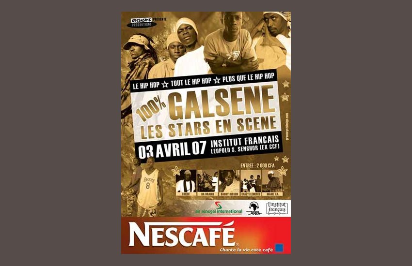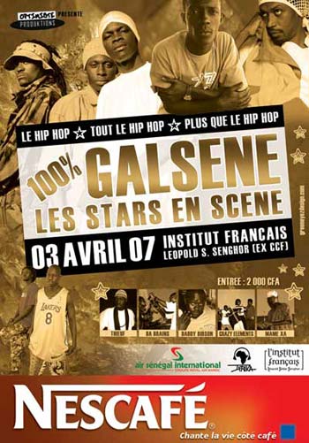 C’est pour cette raison que Optimiste Produktions lance un nouveau concept « 100% GALSENE » qui sera un plateau réservé aux lauréats du festival Hip Hop Awards de chaque année et d’autres artistes ou groupes dont leurs albums est en préparatifs ou déjà sortis pendant cette même période.