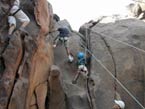 La tâche n’était pas aisée car il a fallu donner les consignes de sécurité et les faire appliquer, sécuriser la descente et l’accès au site, équiper les enfants de casques et baudriers, choisir et équiper les voies d’escalade, encadrer et animer l’activité escalade avec tout ce que cela comporte. De vrais animateurs / éducateurs en herbe Quand aux petits ils s’en sont donnés à cœur joie et ont ainsi pu optimiser leur première sortie escalade sur falaise. ça leurs change des baobabs.