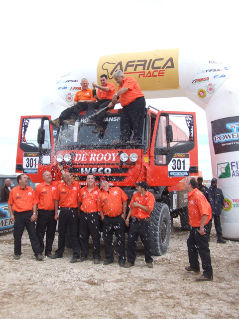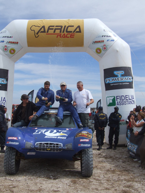 L’équipage français Jean Louis Schlesser, vainqueur du Dakar était en terrain connu en Afrique. En compagnie d’Arnaud Debron sur Buggy Schlesser, il remporte cette première édition de l’Africa Race en auto. Tandis que l’Espagnol Juan Manuel Pellicer au guidon de sa Bmw 450 gagne l’épreuve chez les motards. Le rallye des camions a été enlevé par la légende vivante des courses camions en Afrique, le Hollandais Jan De Rooy. Sur Iveco, il a signé sa deuxième victoire finale à Dakar, 22 ans après son premier sacre.