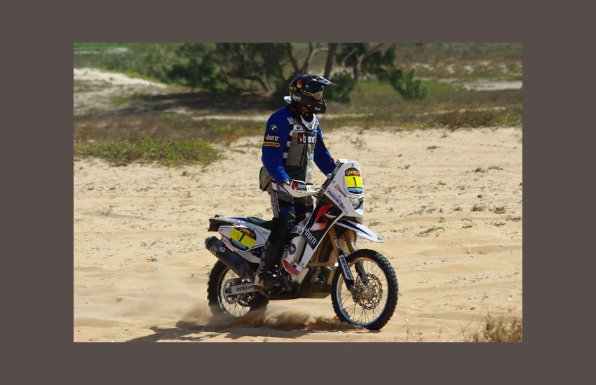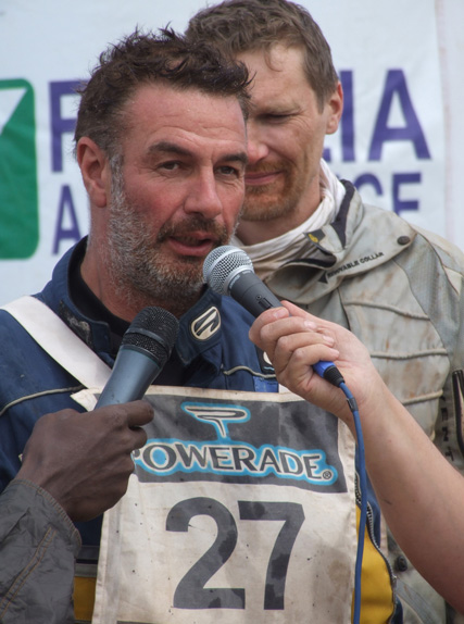 Accueilli en fanfare par le public et les membres de sa famille, le Francosénégalais réalise son rêve et signe, à 55 ans, son dernier rallye international au guidon de son KTM 525 EXC flanqué du numéro 27.