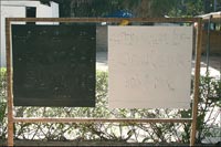 C’est la première fois qu’une manifestation de ce genre a lieu à Dakar : un mélange entre les grands, moyens, jeunes artistes du milieu des arts contemporains, d’âge et de nationalités différentes. A Toubab Dialaw, on passait d’un atelier à l’autre pour discuter, on est restés deux jours à réfléchir avant de s’y mettre. J’ai travaillé sur deux toiles : une toile blanche où j’ai écrit « Couleur noire », et une noire avec « Pensée blanche ». Car qui parle de livre parle d’écriture, qui parle d’objet parle de support et qui parle de Senghor parle de Négritude et de mélange culturel. Noir et blanc, ce ne sont pas des couleurs, ce sont des valeurs. Ce sont comme deux pages d’un livre. L’idée c’est que Senghor, en tant que noir se réclamant de la Négritude, a pourtant fondé toute sa vie, sa pensée en occident. J’ai voulu traduire cette ambivalence.