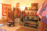 L’atelier « Clod et Mu » est né en 2005 de l’intérêt de ses propriétaires pour les textiles du monde entier et les techniques artisanales d’impression. A partir d’un tissu en coton blanc, le malicane, ils utilisent le savoir faire traditionnel comme la teinture, le batik (réserve de couleurs à base de cire d’abeille avec dessins, couleurs variés) et le thioub (attache et pliage de tissu).