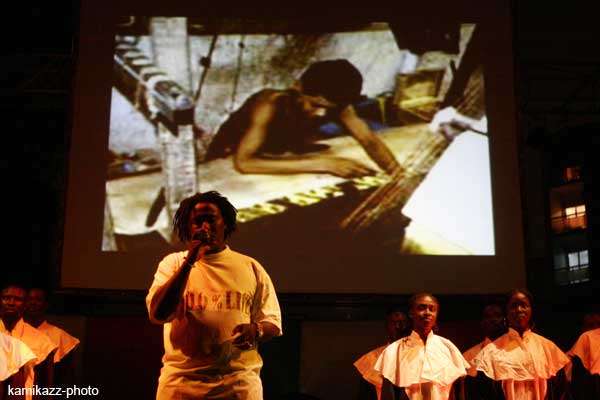 Le jeudi 12 juillet, Didier Awadi et quelques compères se sont produits à l’institut Leopold Sedar Senghor. En première partie, un "requiem noir" illustré par de sombres images et d’autres plus symboliques (celle de Thomas Sankara notamment) avec les voix de Baye Souley et Phat 04 ont permis de réveiller le public et de mettre une ambiance de feu dans la salle.