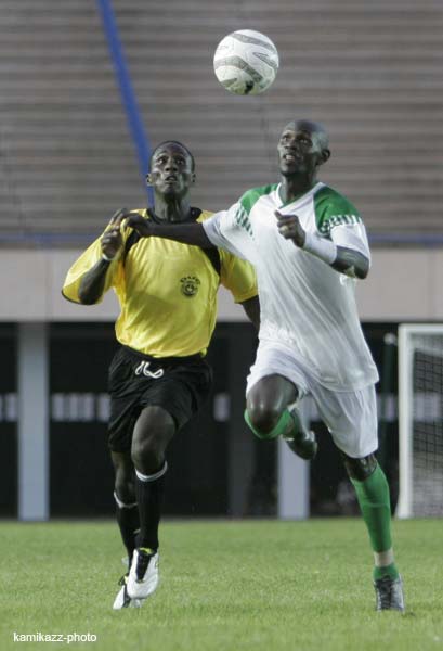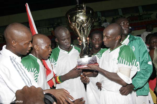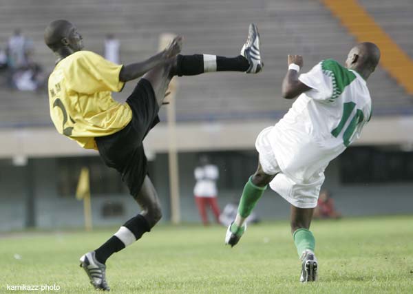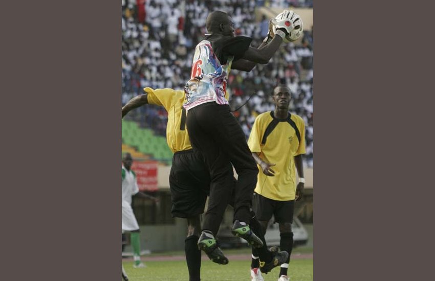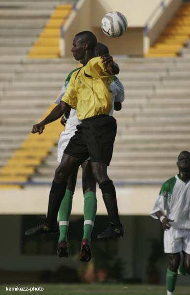 Remportée dans les ultimes instants par l’A.S. Douane (en vert et blanc) au dépend du DUC (en jaune) sur le score de 1 à 0, cette finale de la Coupe du Sénégal 2005 ne nous aura pas permis d’assister à un grand spectacle. Les supporters ont montré leur désappointement en commençant à quitter le stade avant même le coup de sifflet final.